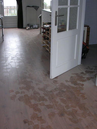 Vandaag was het dan zover, vanmorgen om 8 uur stond de aannemer op de stoep. Een kwartier later zag de woonkamer er ongeveer zo uit: (waarom leveren die gasten geen schoonmaakservice bij een dergelijke klus??)