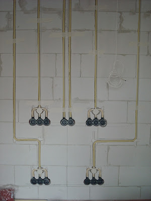 Maartje heeft zich bezig gehouden met het aanleggen van electrabuizen. Bijna overal zitten de muren nu vol met leidingen en dozen om stopcontacten, netwerkaansluitingen en lichtknopjes te maken.