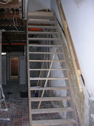 Hier ook nog een foto van het project Trap. We zijn (zoals je ziet) inmiddels aanbeland bij versie 0.8. Vanmorgen is de trapinmeet-meneer ook langsgeweest dus onze trap zal zeer binnenkort in productie genomen worden. De verwachting is dat de trap ergens in oktober geleverd kan worden. Tot die tijd doen we het met dit designstuk, dit exemplaar getuigt zeker van een minimalistische smaak, nietwaar?